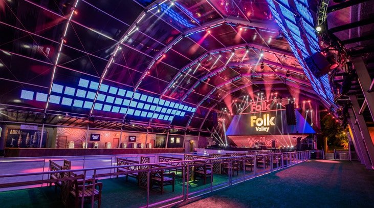 O conforto e comodidade do público também são pontos-chave na proposta dos empreendedores da Folk Valley, que traz uma infraestrutura inovadora em todos os sentidos. Entre os ambientes projetados, a casa oferece além da enorme pista, camarote, Folk Foods (praça de alimentação) e bares.